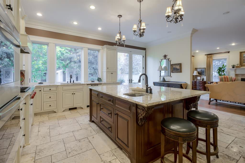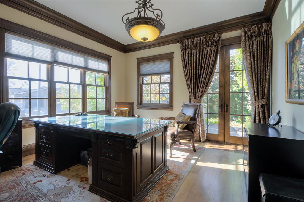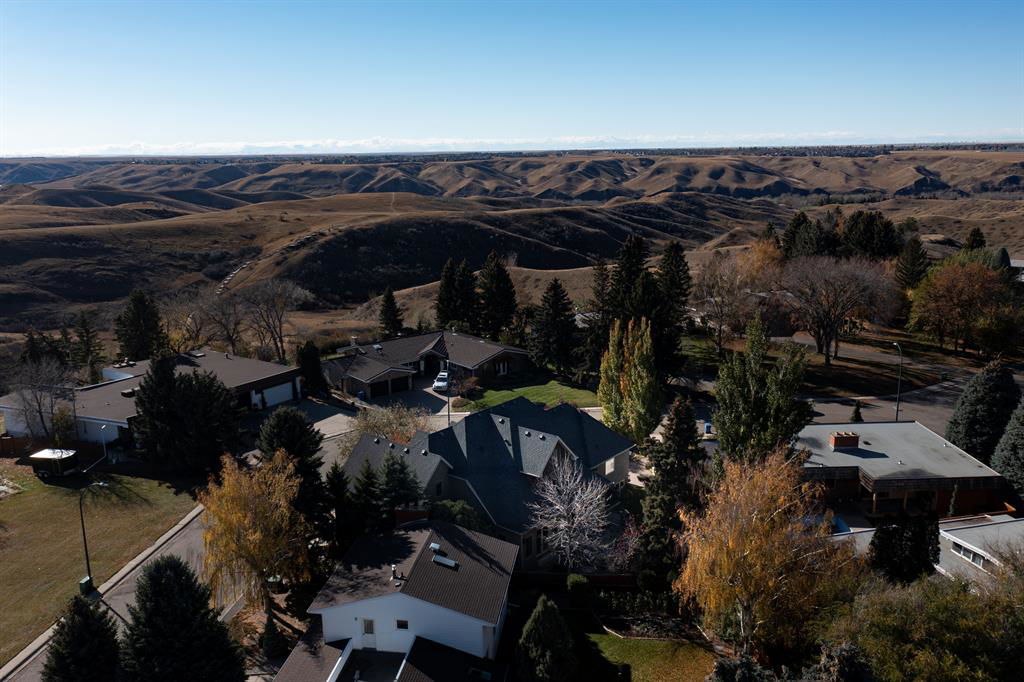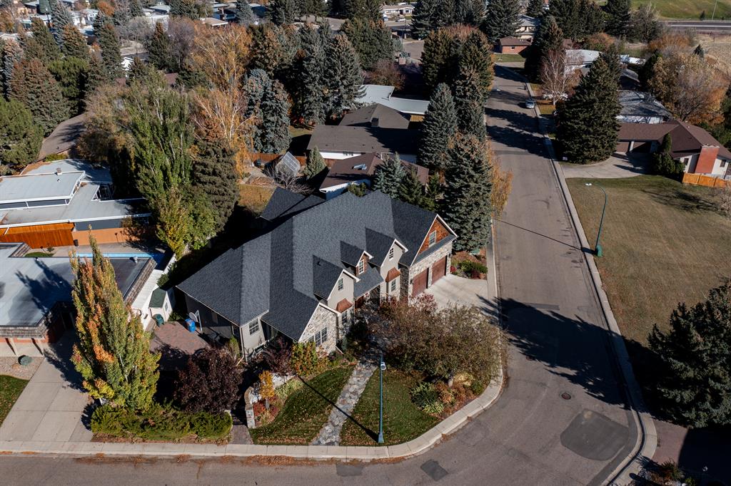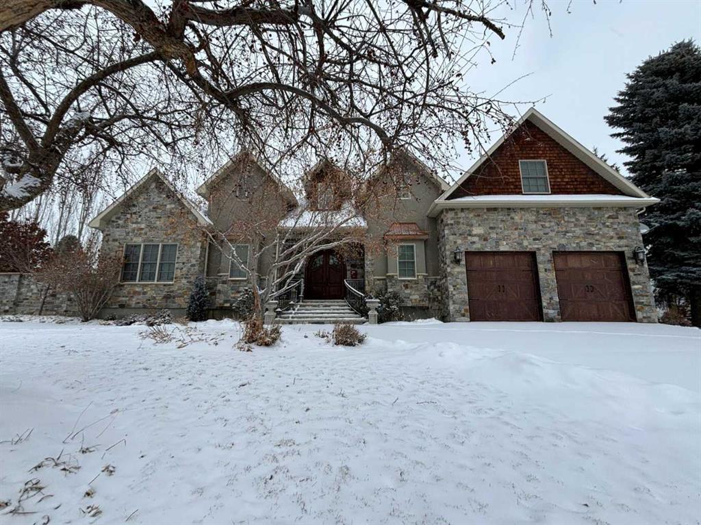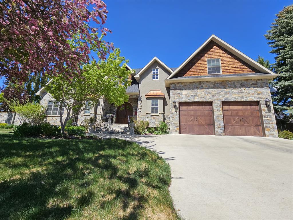If you’re looking for a one-of-a-kind, luxurious, custom-built house, then this is your dream home! Located in a mature, executive neighbourhood with beautiful coulee views, this house features a castle-like exterior highlighted by McGregor Lake and Castle Rock stone, copper awnings, cedar shakes, custom wrought iron rails, antique double solid wood front doors, bronze Ashley Norton hardware and breathtaking landscaping. Upon arriving, you are greeted by a spacious foyer with 10’ ceilings and walnut floors that lead you into the formal dining room. Next is the completely custom kitchen, complete with travertine tile flooring, that looks out to a beautiful garden and courtyard. The kitchen features high-end Wolf and Sub-Zero appliances, a massive cherry wood island, granite counters and pantry. The large living room showcases a custom gas fireplace and has enough room for a grand piano. Completing the main floor is one of the primary bedrooms with spa-like ensuite and option for laundry, powder room, office with custom cherry desk, built-in shelving, and garden door out to a private patio. Upstairs you’ll find a second primary bedroom with the option for a nursery, exercise room, or dressing room attached to it. The ensuite features double vanity, jetted tub, and separate shower. The other bedroom upstairs also has its own ensuite attached. Head downstairs to an inviting family room with fireplace, half bath, laundry room, rec room, theatre room, fourth bedroom, full bathroom, and cold and dry storage. Outside has been landscaped with beautiful perennials that continue flowering all year. There is also a basketball court and in-ground trampoline. A few other upgrades are: spray-foam insulation in all exterior walls, ceilings, floors, and primary bedroom walls. ON-Q intercom system, custom millwork throughout, 9’ basement ceilings, solid stained alder doors, Kolbe triple pain double hung windows, just to name a few. This home will have you in awe!
